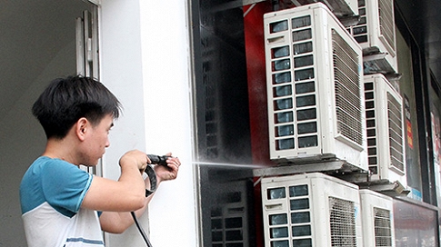 • Bước 3: Xịt rửa sạch sẽ dàn trao đổi nhiệt của dàn lạnh bằng máy bơm cao áp chuyên dụng